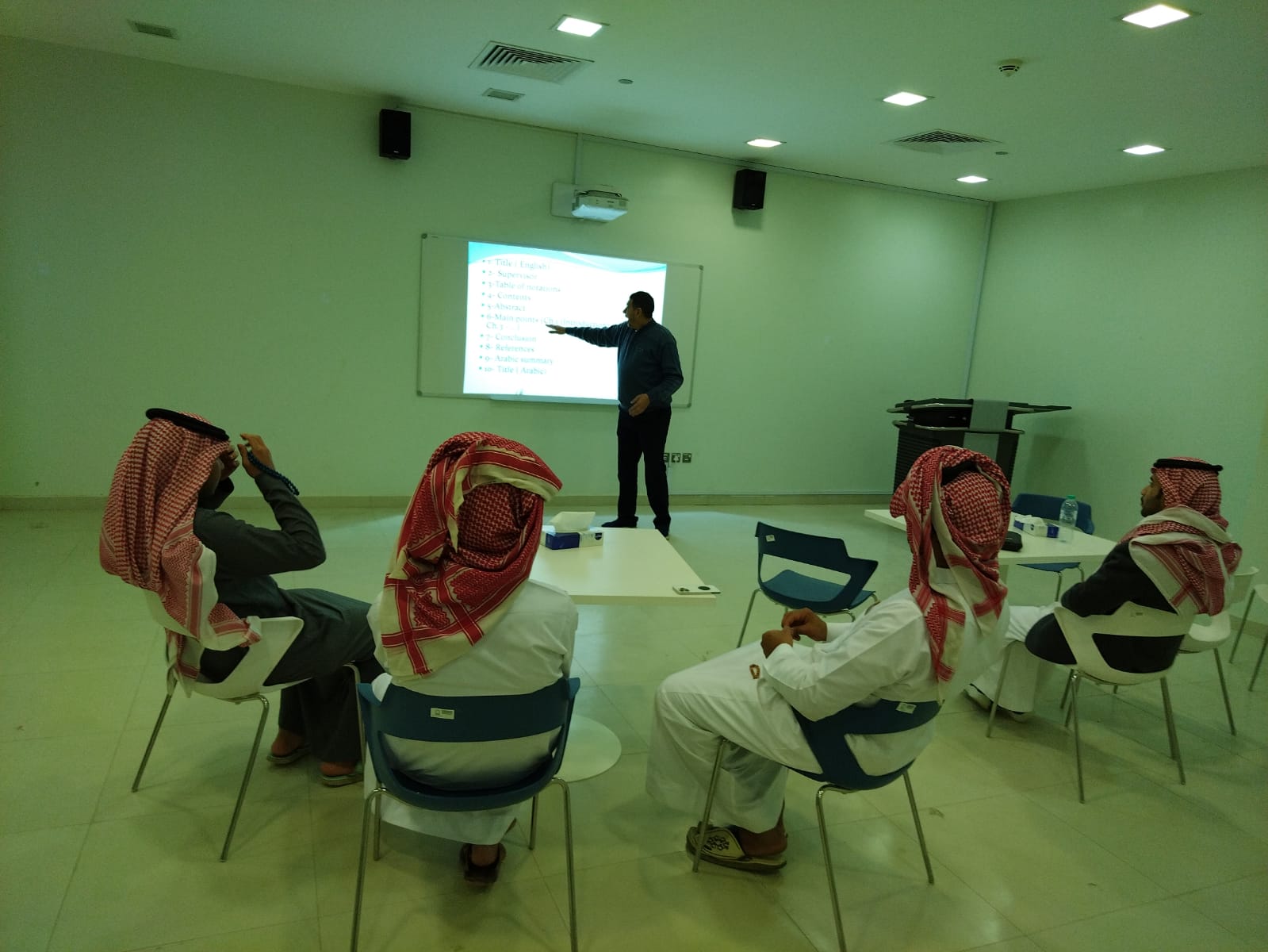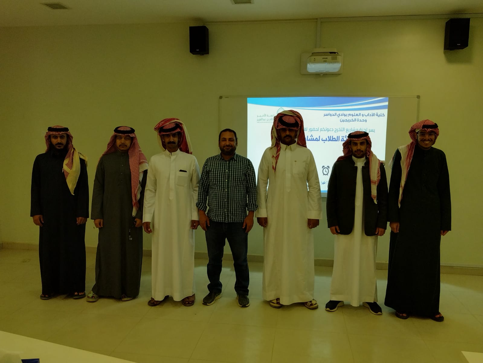 نظمت وحدة الخريجين بكلية الأداب والعلوم بوادى الدواسر ورشة عمل بعنوان ( تهيئة الطلاب لمشاريع التخرج ) بقاعة التدريب بمقر الأنشطة الدور الثانى بكلية الأداب والعلوم بوادى الدواسر ظهر الأربعاء الموافق 1445/08/04 ، ويقدمها الدكتور/ أمين محمد الفقى منسق لجنة مشاريع التخرج وربطها بسوق العمل بوحدة الخريجين بالكلية . وقد قام سعادته بشرح بالتفاصيل عن ماهو مشروع التخرج والتعرف عن كيفية التعامل مع مشروع التخرج واهميته فى الحياة العملية وكيف يكون أنه خطوة أولى للبحث العلمى وكيفية الأستفادة منه فى المجتمع السعودى. كما استفاد الطلاب حيث انهم كانوا لايعرفون عن كيفية الأستفادة من مشاريع التخرج بصورة ممتازة فى المجتمع. وفي نهاية الورشة فتحت حلقة نقاش بين الطلاب والمحاضر وتقدم الحاضرون بعدة أسئلة؛ أجاب عنها سعادته.